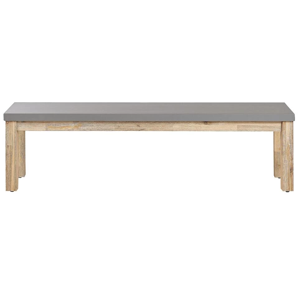 Buitenbank met betonlook zitvlak en acaciahouten frame. Als je houdt van een industriële stijl en buiten dineren, dan is deze bank zeker iets voor jou. De tuinbank combineert perfect de stoere uitstraling van de vezelbeton zitting met een houten onderstel. Het sterke en stevige acaciahout garandeert duurzaamheid en biedt tegelijkertijd een klassieke, natuurlijke uitstraling. Deze veelzijdige bank is een prachtige aanvulling op vrijwel elke buitenruimte, van een klein balkon tot een grote tuin. Combineer het met een bijpassende tafel en creëer de perfecte setting voor je buitenfeesten.