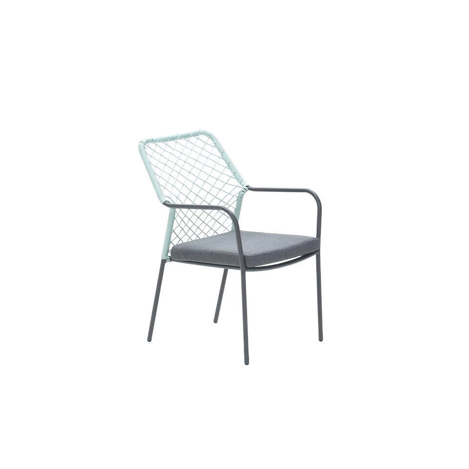 De Ross tuinstoel is vervaardigd uit een onderhoudsvrij aluminium frame met een stevige poedercoating. Om dit stevige aluminium frame zit 5 mm dik hoogwaardige kwaliteit touw. Dit touw heeft een zacht groene kleur en is te vergelijken met touw dat in de scheepsvaart gebruikt wordt. Het touw is voorzien van een rubberen kern binnenin met daarin meerdere polyester draden voor de stevigheid. Om de rubberen kern zit solution dyed polyester rope. Dit betekent dat het touw door en door gekleurd is en verkleurt veel minder snel.
