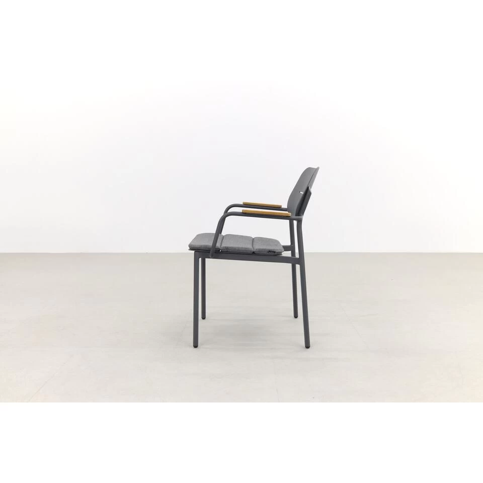 Op zoek naar een stoere tuinstoel die weinig onderhoud nodig heeft? Dan is Courage dining tuinstoel van GreenChair de juiste keus voor jou! Deze tuinstoel heeft een minimalistisch uiterlijk door het slanke frame. Deze stoel krijgt een stoer tintje door de donkere antracieten kleur. Het teakhouten detail op de armleuning zorgt voor een unieke look die overal bij past. Ideaal is dat je deze stoelen op elkaar kunt stapelen, waardoor ze eenvoudig opgeruimd kunnen worden. Deze tuinstoel is verkrijgbaar in verschillende kleuren die je heel leuk kan mixen en matchen! Bestellen van deze dining chair kan direct online.