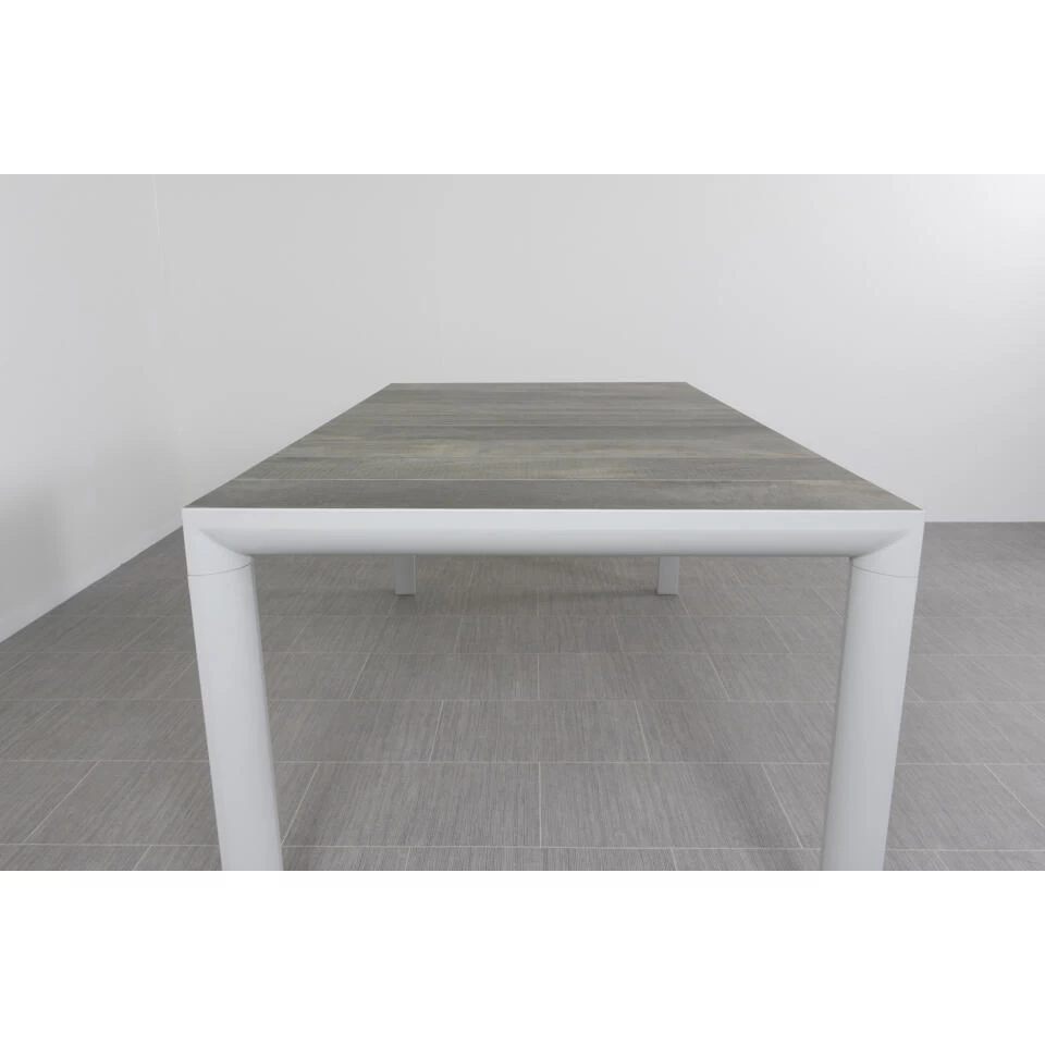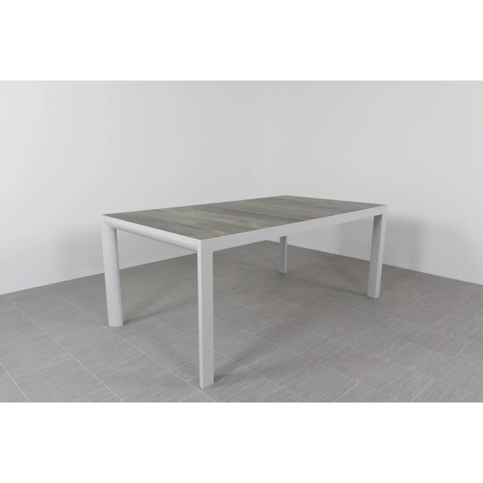 De King tuintafel kenmerkt zich door de stoere looks en de stevigheid. Het tafelblad is keramiek. Keramiek is steen dat erg hard is en daarmee uitermate geschikt als tafelblad. Dit keramiek heeft een houtlook wat de tafel een mooi uitstraling geeft.