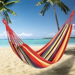 Onze opvouwbare hangmat is perfect voor het relaxen in de tuin, op het strand of op de camping. Zo kan je altijd en overal genieten van de zon en de wind.